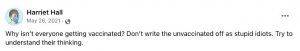 Why let the fraud and propaganda die with a fake skeptic’s death? The clot shot pushers want more, more, more. They’re actually doubling down on how Dr. Hall was a truth seeker and how she probably would have asked everyone to “have a kind thought for her” and “continue to support her belief in the truth.” Really? Does that include the belief that all vaccine skeptics are idiots and need their heads examined?